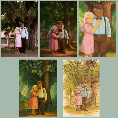 Through your memories and photos, we craft a beautifully illustrated tale filled with the moments that make your grandparents unforgettable—from bedtime stories and garden adventures to quiet chats and big life lessons.